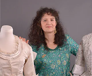 Ainsi, étudier, reproduire ou s’inspirer des pièces d’époque lui permet d’allier son goût pour la recherche, l’histoire et la création, dans une démarche toujours guidée par le souci de l’historicité, de la qualité et un soin particulier accordé aux détails.Elle propose ses services aux musées et aux professionnels des monuments historiques.Par le biais des expositions et des publications, elle s’attache à faire connaître le patrimoine textile à un large public, car parler du costume, c’est aussi parler d’histoire.