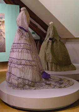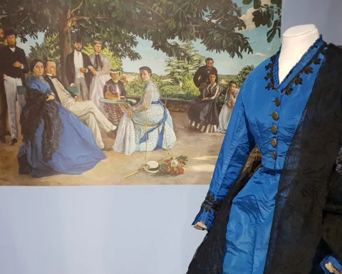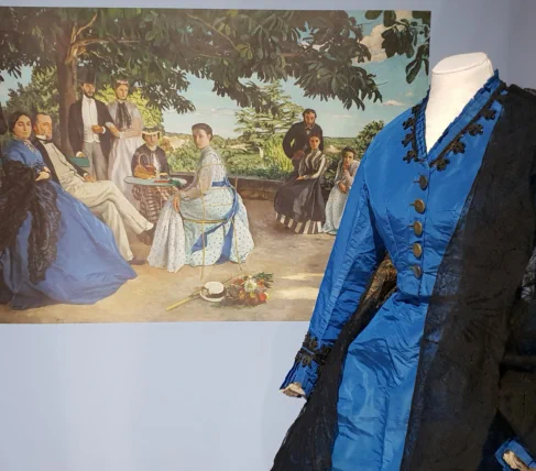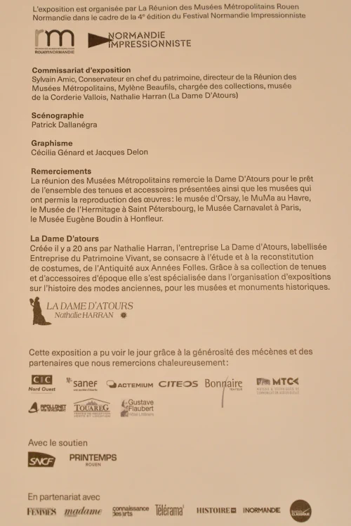 Peintres de la modernité, les Impressionnistes livrent leur vision de la société de la fin XIXe siècle. Nombre de leurs œuvres présentent des scènes de vie où femmes et hommes sont vêtus selon les dernières tendances vestimentaires, symboles de la vie moderne.Portraits ou scènes de groupe sont pour les peintres l’occasion de traiter de la mode, révélatrice des aspects novateurs de leur époque. Dans la seconde moitié du XIXe siècle, la presse spécialisée, la naissance des grands magasins et les prémices du prêt-à-porter font de la mode un phénomène en permanente évolution et un objet d’étude pour les artistes. Les œuvres des peintres impressionnistes dévoilent çà et là, les silhouettes corsetées des femmes, le chic des parisiennes, les couleurs en vogue, les tenues de style champêtre ou les costumes de ville des masculins. Exposition réalisée au musée industriel de la Corderie Vallois (Réunion des musées de Rouen) dans le cadre du festival Normandie Impressionniste 2020.Pour une visite virtuelle de l’exposition,cliquez ici.La Dame d’Atours a déjà travaillé sur cette thématique et a prêté à plusieurs reprises des pièces de sa collection pour les expositions « Les Impressionnistes et la Mode » présentée au Musée d’Orsay (Paris) en 2012, au château de Candé (Conseil départemental d’Indre-et-Loire) en 2017, à la municipalité de Gif-sur-Yvette en 2017 et au musée départemental Stéphane Mallarmé à Vulaines-sur-Seine en 2019 et de nouveau au musée industriel de la Corderie Vallois (Réunion des musées de Rouen)en 2023.