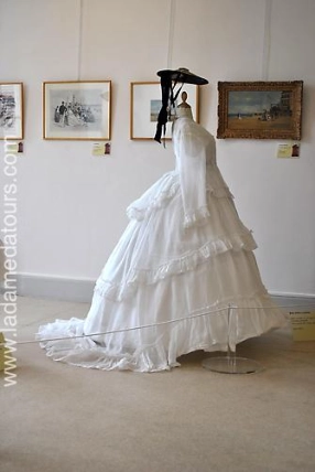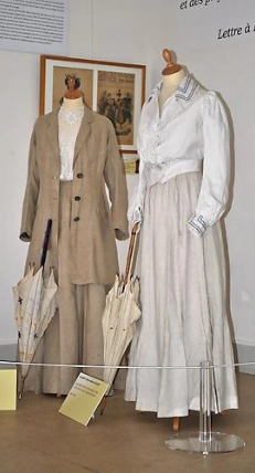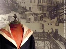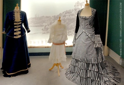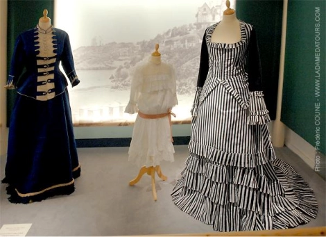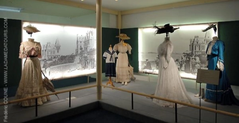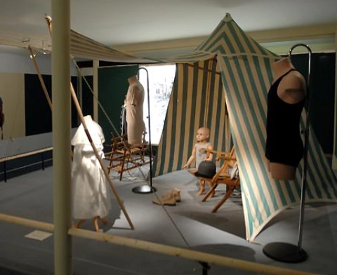 Durant la seconde moitié du XIXème la société de loisirs se développe et le tourisme commence à se démocratiser. Grâce aux progrès réalisés dans les transports, notamment les chemins de fer, les voyages se multiplient, véhiculant des promeneurs toujours plus nombreux vers les lieux de plaisirs, les bords de mer ou les sites de cure thermales.La mode et les garde-robes doivent s’adapter à ces nouvelles destinations et aux animations qui y sont proposées : costumes de bain, mais aussi toilette de casino, tenues de bord de mer et de promenade et bientôt tenues de sport permettent aux Elégants de s’adonner à de nouvelles activités tout en respectant les règles du savoir-vivre.Ce thème convient parfaitement aux stations balnéaires ainsi qu’aux villes thermales qui ont connu un essor à la fin du 19e siècle et à la Belle Epoque.Cette exposition a été présentée au Palais des Arts de Dinard en 2007 et à la Villa Montebello de Trouville en 2011. Des pièces de la collection ont été prêtées au château d’Hardelot (Conseil départemental du Pas-de-Calais) pour son exposition thématique en 2021 et au musée de Cabourg pour son parcours Belle-Epoque en 2025.